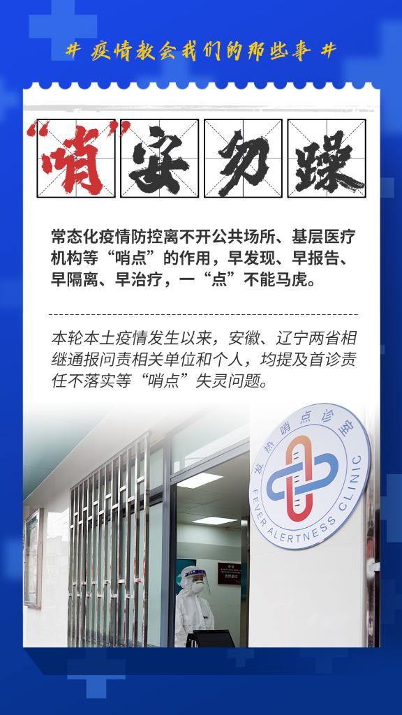 此前,安徽、辽宁两地对本轮疫情中发现的部分基层哨点违反首诊负责制均作出处理。