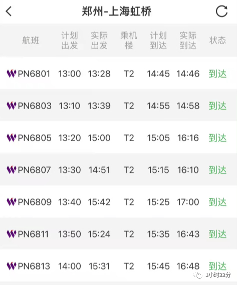 以每十分钟一架次密集编队从郑州运送河南支援队抵达虹桥机场的包机机队